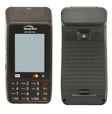 본문 스마트로 NFC 무선카드단말기 SMT-M651NQ -애플페이지원-IC/MSR단방향-1D/2D 카메라 방식 (QR간편결제)-C타입 고속충전지원-KLSC,NFC브랜드인증(VISA,MASTER,AMEX)/Apple PAY지원-스피커 탑재/음성 멘트 지원